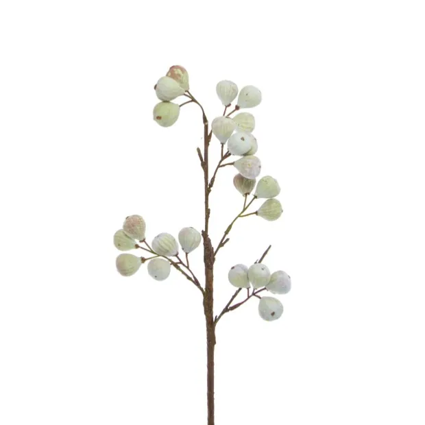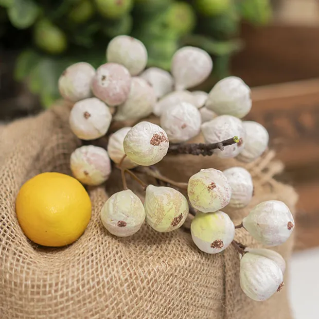 This spray measures 61cm in overall height and includes 22 medium whitish green figs. Each fig measures approximately 2.5cm at its widest point and 2.5cm tall.