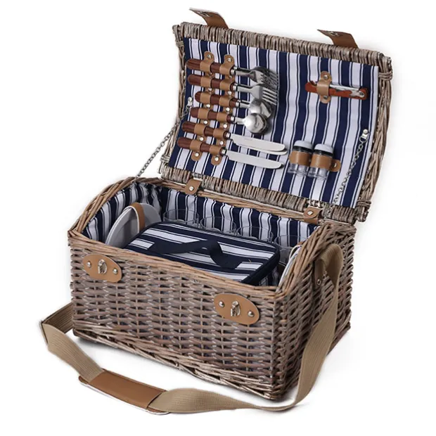 This picnic basket measures 40cm wide, 28cm deep, and 20cm tall. It is sold individually.