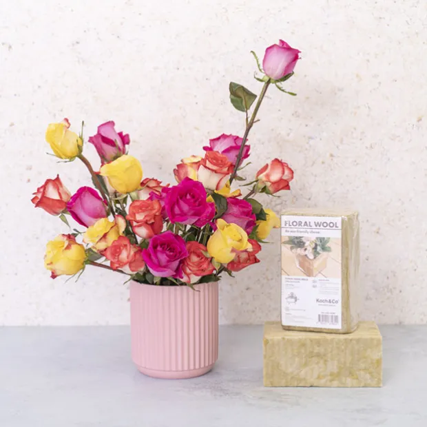 Our Floral Wool Brick Floral Design Medium Single is a natural agra wool floral foam brick. Floral Wool Floral Design Medium Brick Foam is a natural agra wool floral foam and is a great environmentally-friendly alternative to regular floral (phenol-formaldehyde) foam. These bricks have a large water retention power and are easy to cut. This Floral Wool can be used for securing both fresh & artificial flowers in any floral arrangement. Floral Wool Design Media and FibreFloral™ have many similar properties.