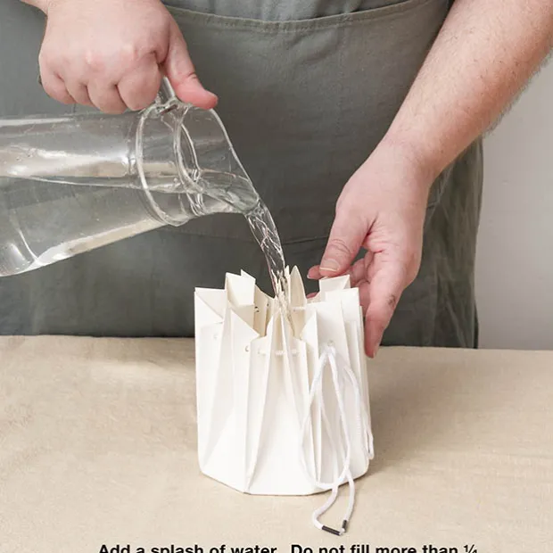 The pod can be used with a splash of water, get it fresh wrap, wet or dry floral foam. Do not overfill. Fill with water no more than one-quarter.