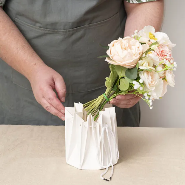 Just tighten or loosen the rope to suit the posy size.