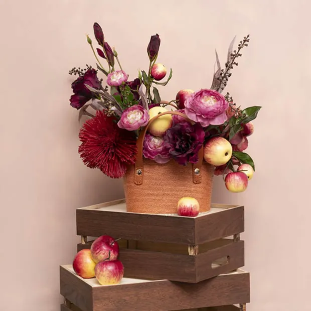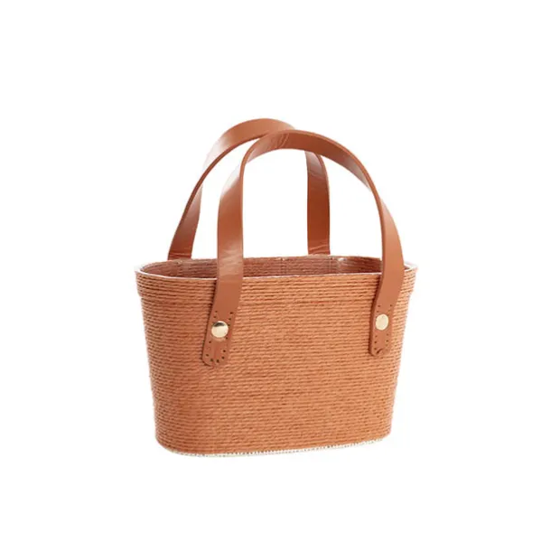 Robust and multipurpose in design, this basket has leather-like handles and a 500-micron, hard PET liner. This waterproof lining makes for easy use for floral arranging. This liner is glued in, to prevent movement and to give the basket reinforced strength.