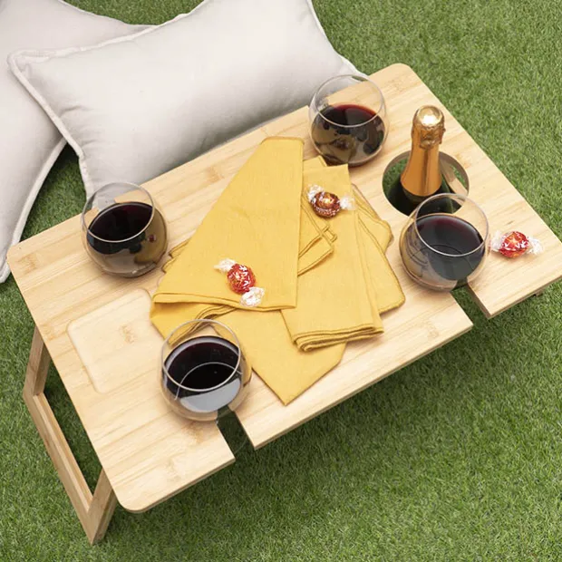 Lightweight and foldable, this table is perfect for picnics, beach days, or backyard gatherings, offering a practical and elegant way to serve wine and snacks anywhere you go.