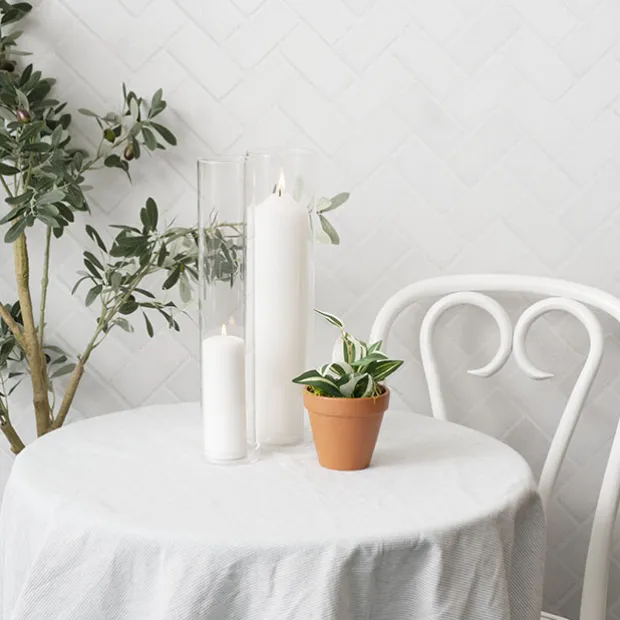 Standing at a height of 40cm and a diameter of 6.5cm, this item is sold individually. This Hurricane Sleeve is suitable for use with candles measuring a maxmum of 5cm in diameter. Pair with our 7.5cmD glass plate SKU:CH6681 for a candlelit experience that will save your surface from waxy drips and melted pools of wax.