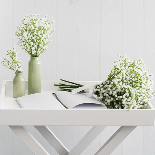 This spray measures 66cm tall. The stem measures 45cm tall and the flowers measure 20cm wide.