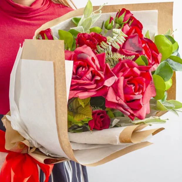 The smooth texture of white kraft paper gives it an elegant and crisp appearance that is perfect for creating a unique flower arrangment or gift