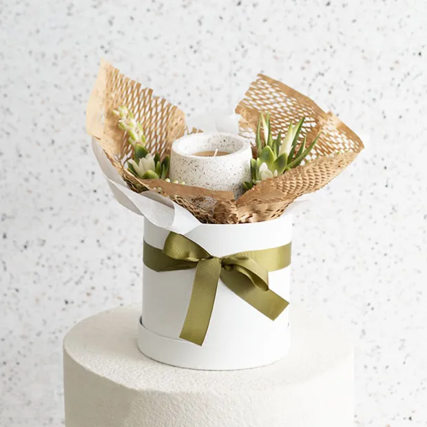 The beauty of this wrap is that it can also double as packaging wrap for your business needs. It can be used purely as a protective wrap or incorporated as gift wrapping. Wrap anything from candles, to bottles, or other delicate items.