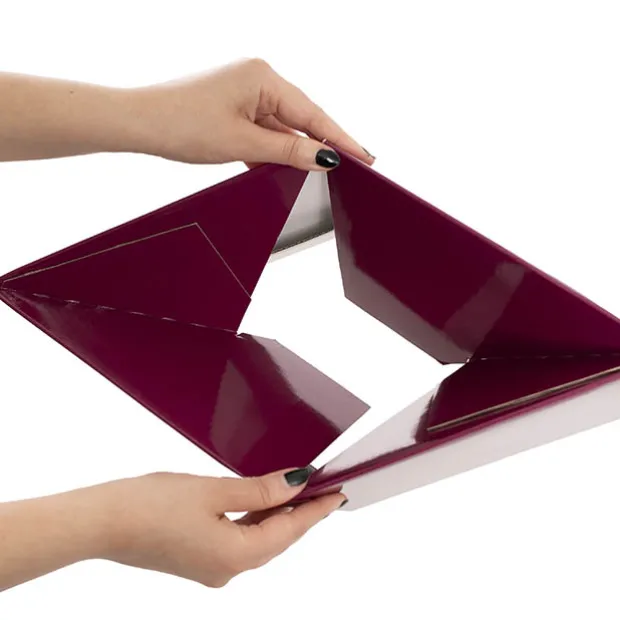 Simply take your flat pack posy box and open. The base will lock into position with a light pull or (or push from the inside). Then fold down the top flaps.