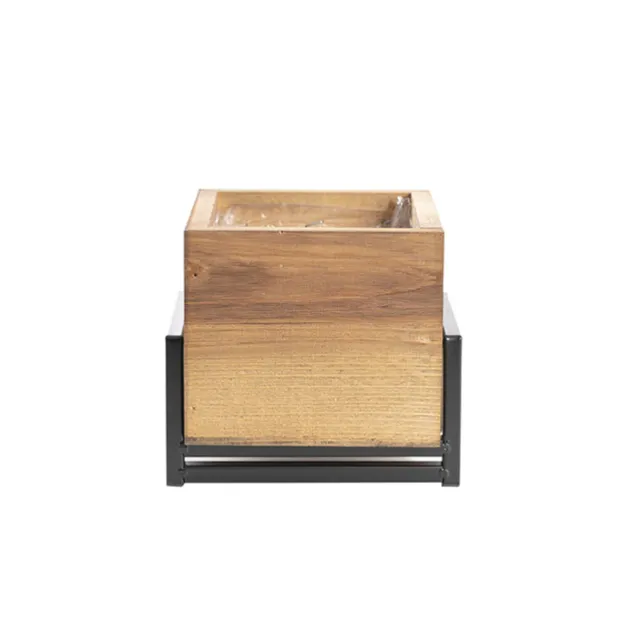 Sturdy tabletop metal frame and timber box. Eco friendly. Wooden box is lined with plastic liner making the planter waterproof. The stand and the box come in 2 pieces. Reclaimed wood has been pre-treated and polished.