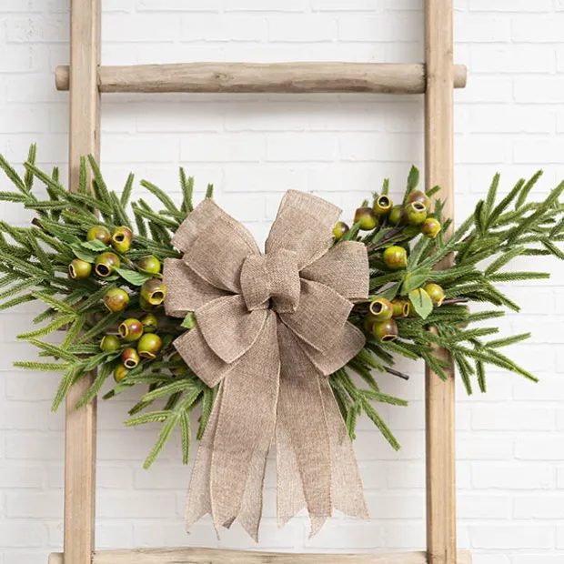 This rustic bow has a sewn wired edge, which gives it a polished finish. Featuring easy-to-usetie attachments, this bow provides a simple way to add a homey festive touch to your gifts and decor this holidayseason.