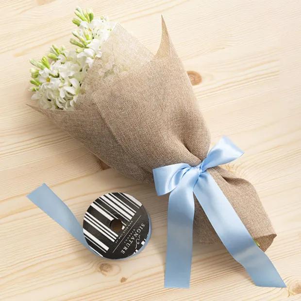 A beautiful wide ribbon for adding a special touch to gift wrapping and packaging, It can also be used in fashion design to embellish garments or hats or as a sash, as well being used for wedding decorations, and other event decor to add a pop of color and texture to the design.