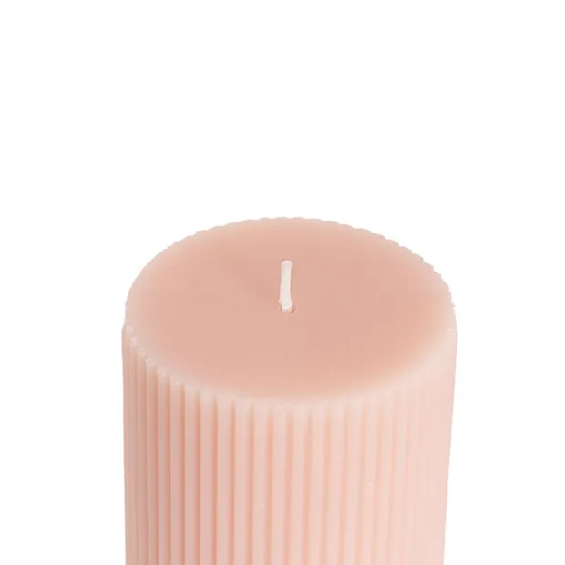 Our Roman Fluted Pillar Candle in Pale Pink is a plain-coloured ribbed candle that will bring textural interest to your event and home decor. Pair with other products from our Roman Fluted candle range for a complementary cluster. This candle is dripless.