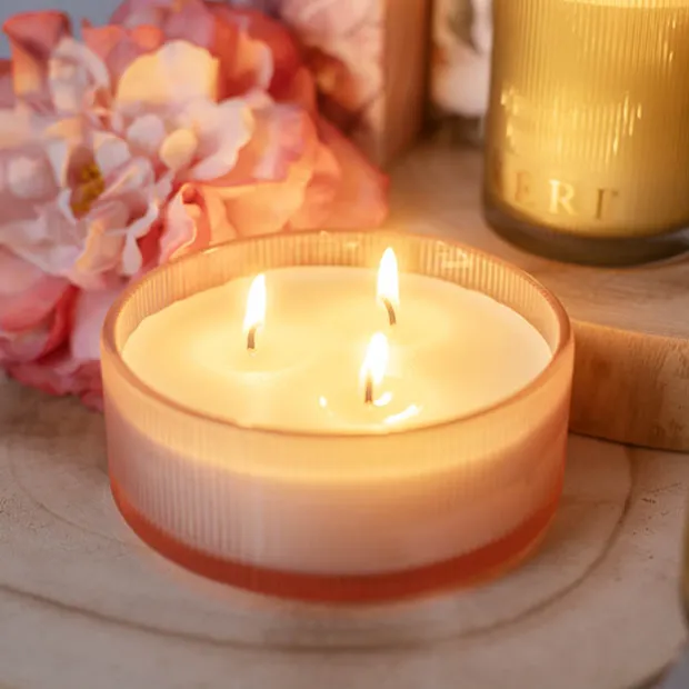 Indulge in the lush aromas of lychee and peony with our three-wick Indulgence candle. This larger candle format offers a stronger scent diffusion, featuring the sweetness of lychee balanced with the subtle elegance of peony. Made from natural soy blend wax and crafted by hand to ensure a superior, clean burning experience.