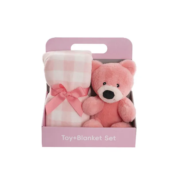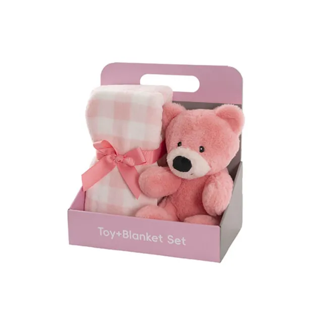 The teddy measures 21cm when seated. The blanket measures 90cm x 75cm. This set is sold individually.