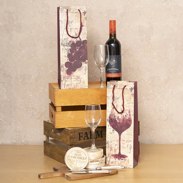 Wine Bag Single Bottle Pack 5 Vintage Glass Red (12x9x35cmH)