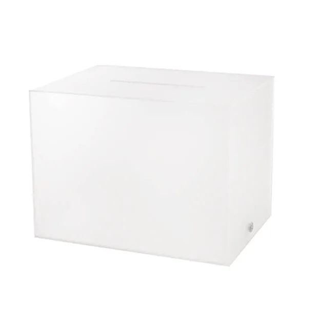 This wishing well measures 40cm in length, 30cm in width, and 30cm in height. Unlike other styles of wishing well, this model does not have a hinged lid at the top; this wishing well opens from the base. The envelope slit sits at the top of the wishing well and measures 1cm wide and 20cm long. This wishing well is sold individually.