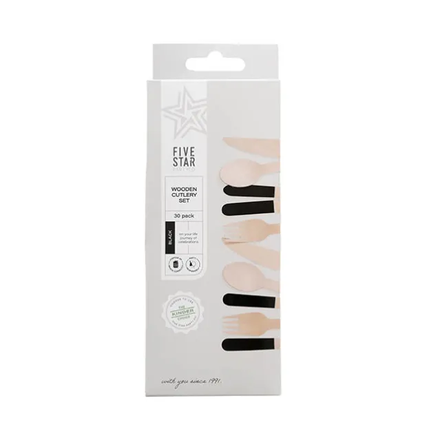 This product is available in a set of 30 pieces, including 10 knives, 10 spoons, and 10 forks.