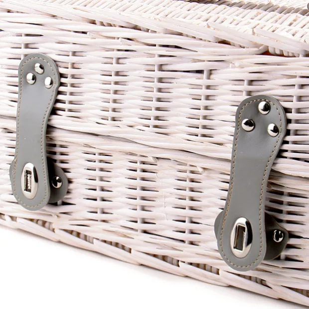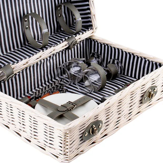 The picnic basket is lined with striped fabric surface with a water-resistant backing and has a deep base to carry extra necessities for a two-person picnic.