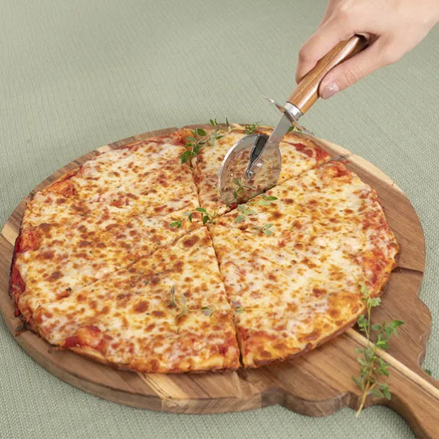 This pizza board measures 46cm long, 33cm wide, and 3.5cm thick. It is sold individually.