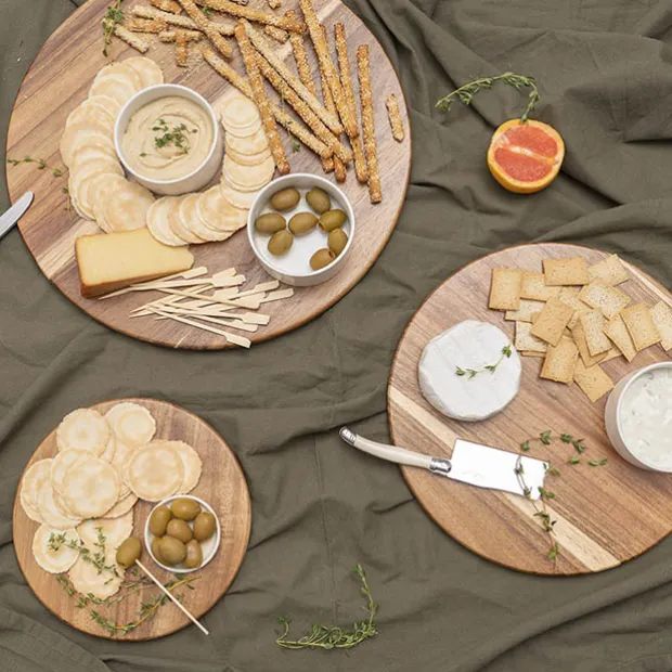 This round board measures 45cm in diameter and 1.5cm thick. This product is sold individually.