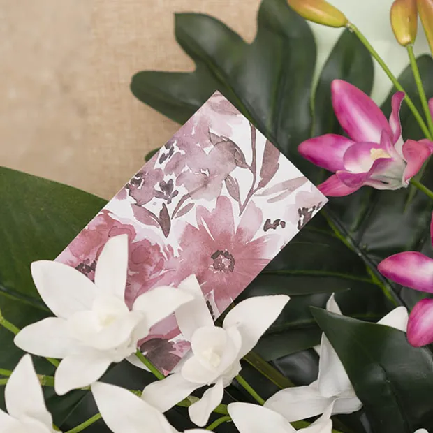 This Artisan card has a landscape layout with side fold on the short edge, so the card will stand lengthways for display. Each card features a personal space on the inside for you to convey heartfelt messages or well wishes.