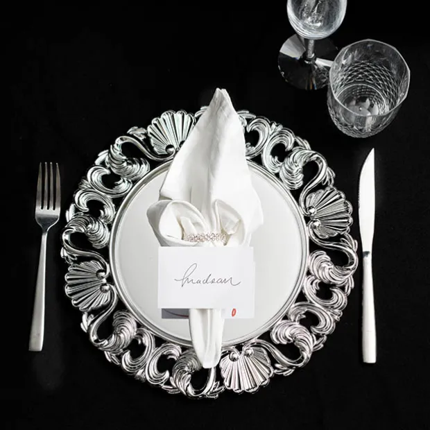 This plate is available in packs of four and masures 32.5cm in diameter.