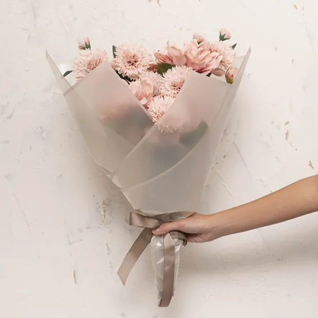 It will wrap them in a Nude frosted hue cello with a darker tone nude silhouette border and frame your flowers perfectly.