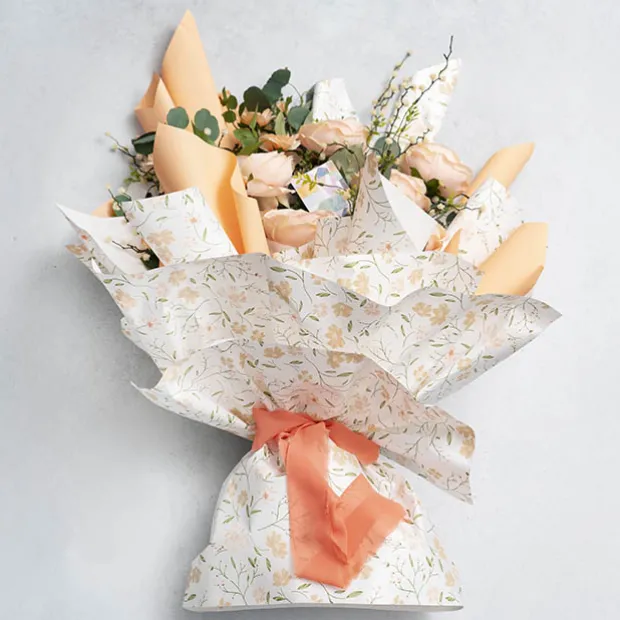 Suitable for wrapping floral bouquets, this print of wrap is particularly well-suited to Mother’s Day, Summer, or Springtime themes.