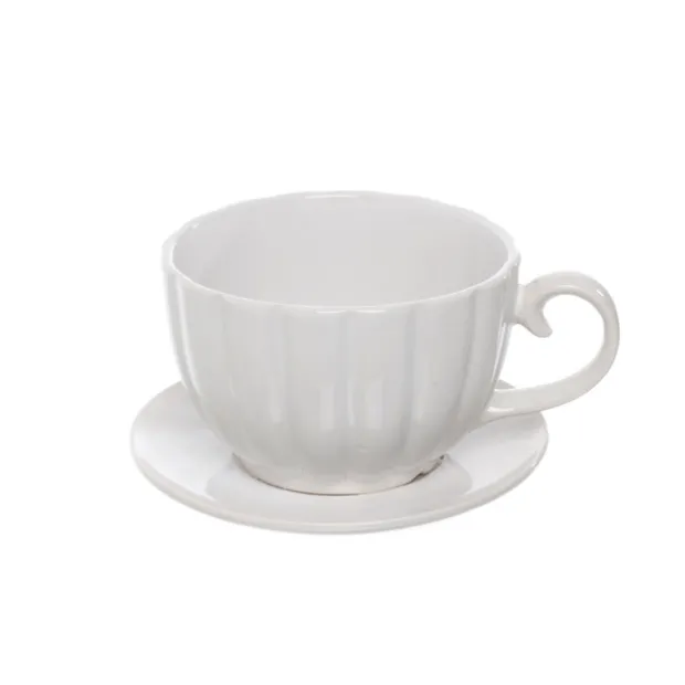 Please note: this is sold as one piece, with the cup fused to the plate. This fully glazed piece features a drainage hole. The opening measures 15cm in diameter and has an overall height of 10cm. This piece is sold individually.