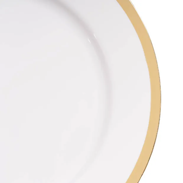 Use this plate as the perfect foundation for your dinnerware, adding a touch of sophistication to any occasion. Reuse these versatile plates for weddings, festive gatherings, or everyday dining with a refined flair.
