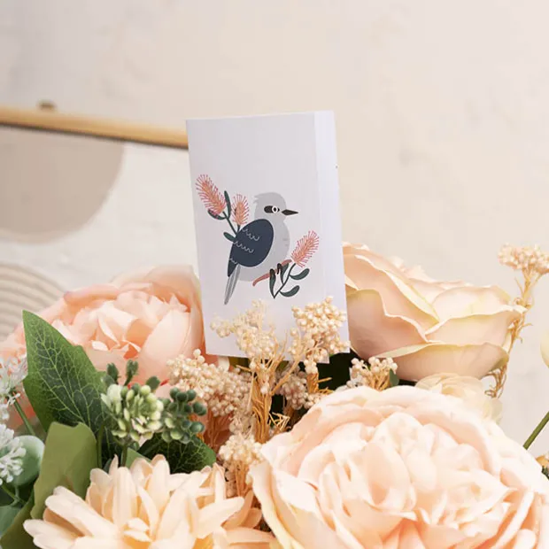 This Classic card has a portrait-style layout with side fold so the card will stand upright for display. The classic side fold design provides a premium feel and added privacy for your notes, with space on the inside for you to convey heartfelt messages or well wishes.