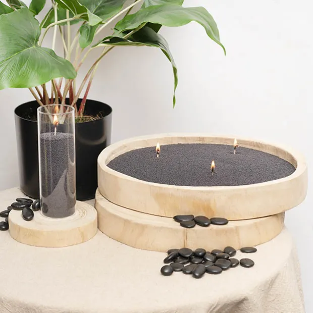 Fragrance or essential oil can be added to candle sand wax before it is lit. For safety reasons, we advise against the addition of any flammable fragrances or oils to candle sand wax. Some fragrance oils may amplify the flame, so if fragrance is added, consider making the wick shorter than 1cm above the wax.