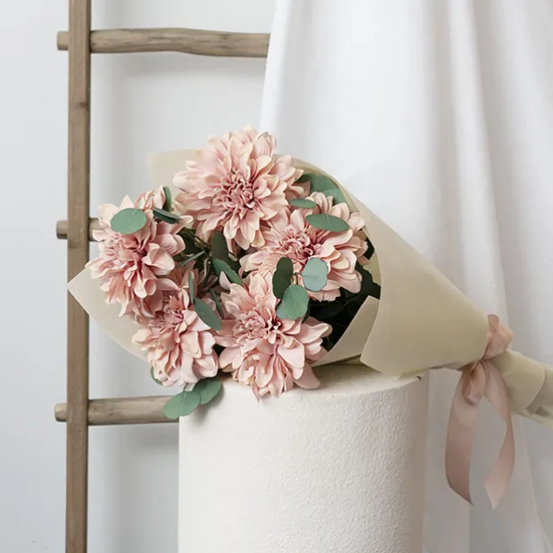 Whether displayed on its own in a tall vase or incorporated into larger floral arrangements, this artificial dahlia stem lends a fresh, airy feel to your space.