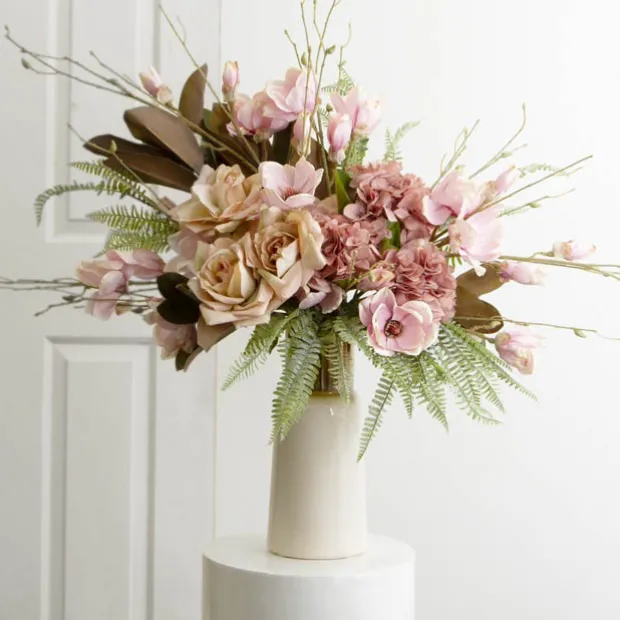 Each rose head is unique with patches of green and brown on the petals to create a natural aged appearance.