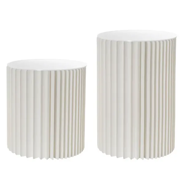 The Elite Foldable pedestal has a unique 90 layer accordion construction with an elegant ripple honeycomb look. Each column is 31cm in diameter and comes in two sizes: 35cm and 45cm tall.Each column has a frosted finish acrylic topper, measuring 31cm in diameter and 3mm thick. The acrylic top provides a smooth, level surface for displays and fortifies the stand to bear a weight of up to 60kg.