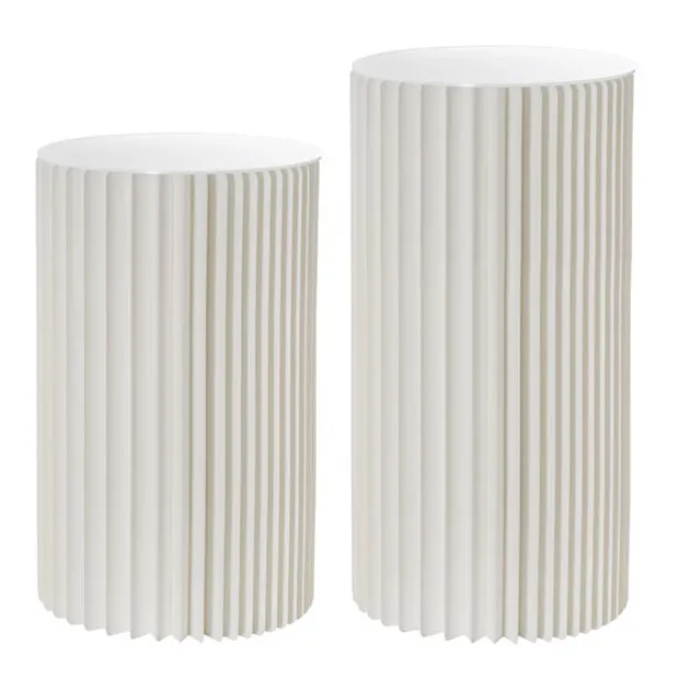 The Elite Foldable pedestal has a unique 90 layer accordion construction with an elegant ripple honeycomb look. Each column is 31cm in diameter and comes in two sizes: 70cm and 90cm tall.Each column has a frosted finish acrylic topper, measuring 31cm in diameter and 3mm thick. The acrylic top provides a smooth, level surface for displays and fortifies the stand to bear a weight of up to 50kg.