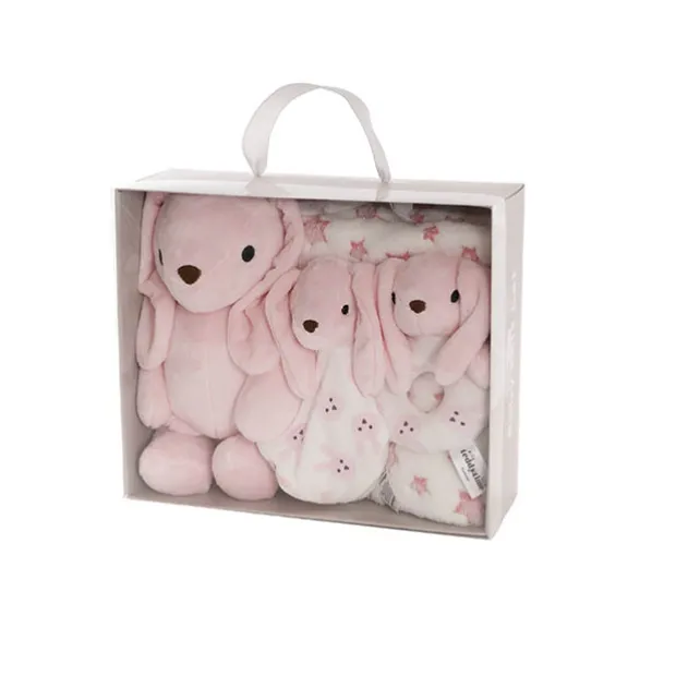 The bunny measures 32cm, with a sitting height of 23cm. The blanket measures 90cm x 75cm. This set is sold individually.