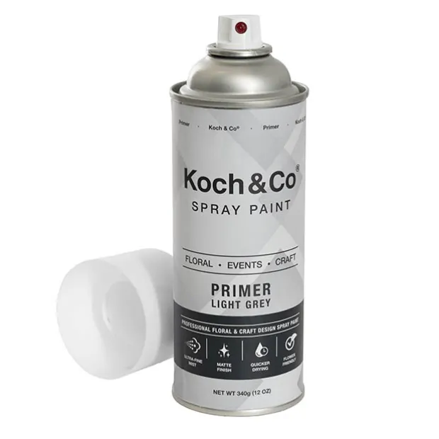 Koch & Co Spray Paint Primer in Light Grey is the leading spray primer solution for floristry and event professionals, craft enthusiasts, and hobbyists.