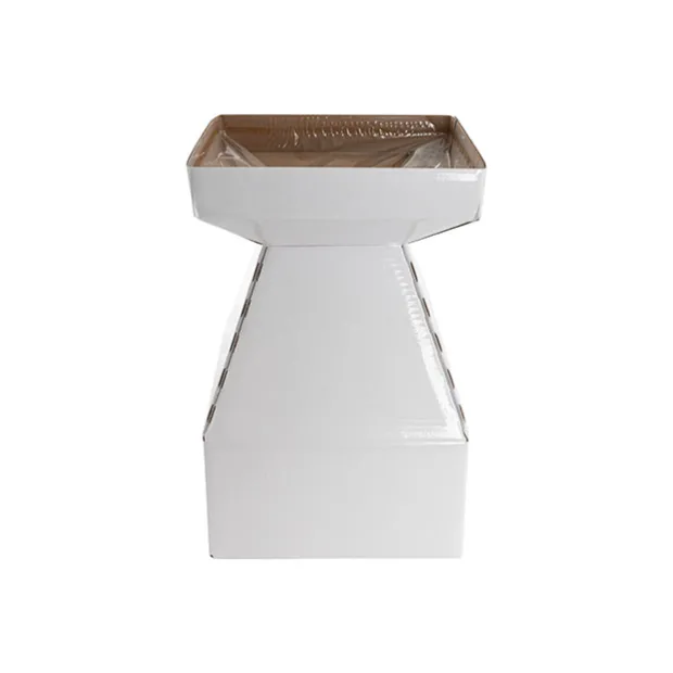 Sold in a pack of 5, this product has a base of 17.5×17.5cm and tapers in. The neck opening is 9x9cm and overall the height is 27cm.