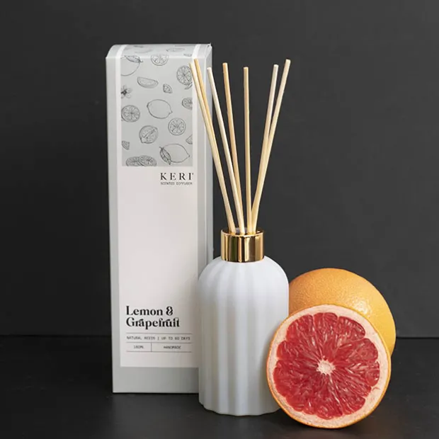 Packaged in a plastic-free, illustrative gift box, this diffuser is bottled in a frosted glass vessel.