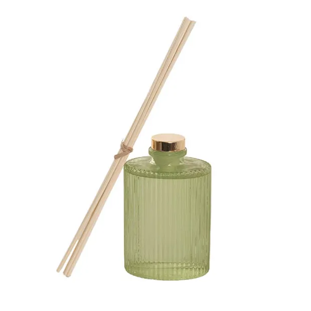 Packaged in a premium, plastic-free illustrative gift box, this diffuser fragrance is presented in a finely ribbed, tinted glass bottle.