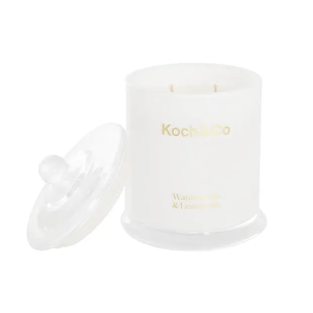 Fresh and invigorating, this double-wick Leisure Scented Soy Candle with Watermelon & Lemonade fragrance is made with natural soy wax. This premium candle has been infused with a long-lasting, refreshing fragrance carefully formulated by top international brands.