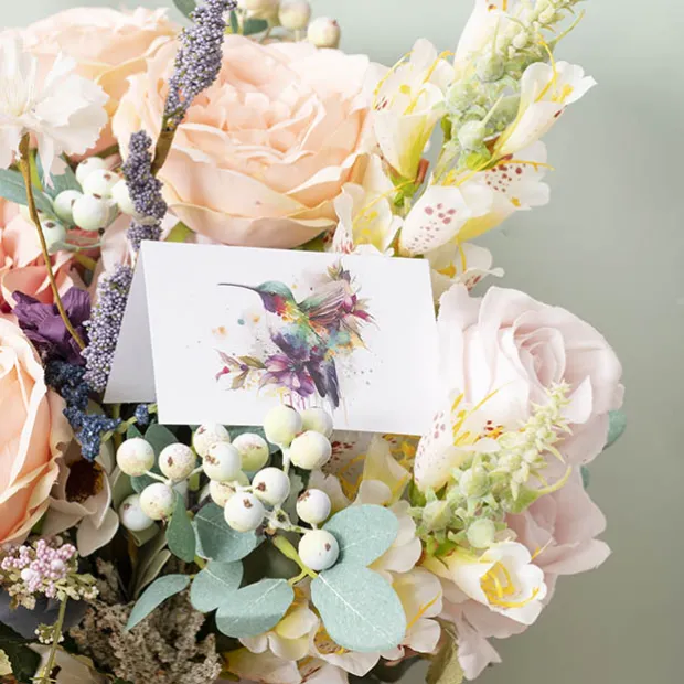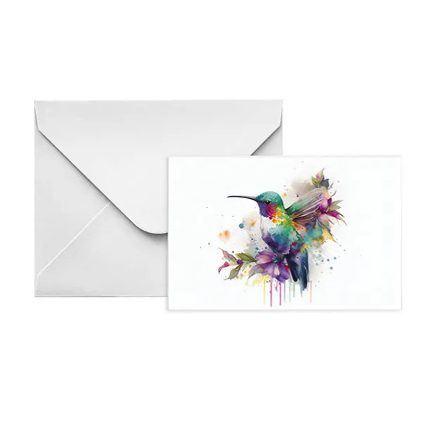 This pack includes 25 folded cards, along with 25 white envelopes. Each card measures 10cm wide, 6.5 cm tall when folded, 13cm when flat.