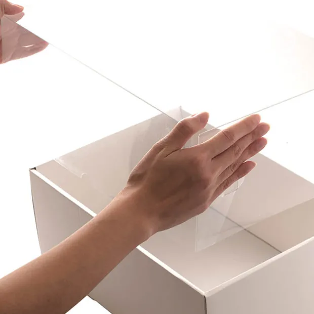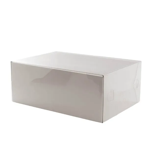 This item is flat packed and easily assembled. The transparent PVC lid showcases the contents of the box, ideal for displaying gifts or hampers that are visually striking or marketing-related.