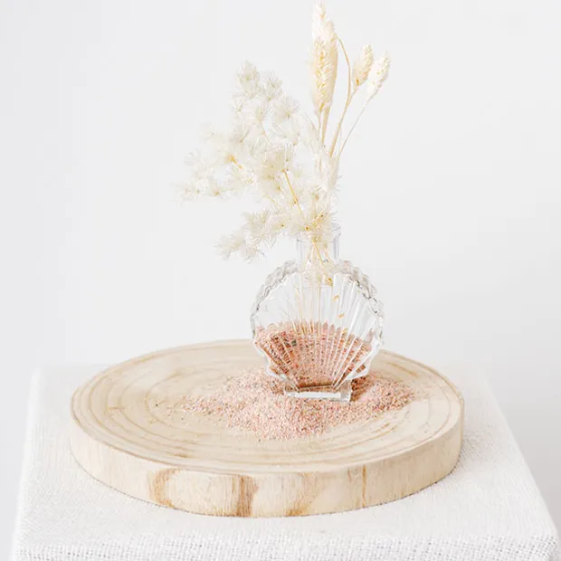 Create a coastal vibe with this unique glass shell shape vase. Looks adorable on its own or can be filled with small florals.