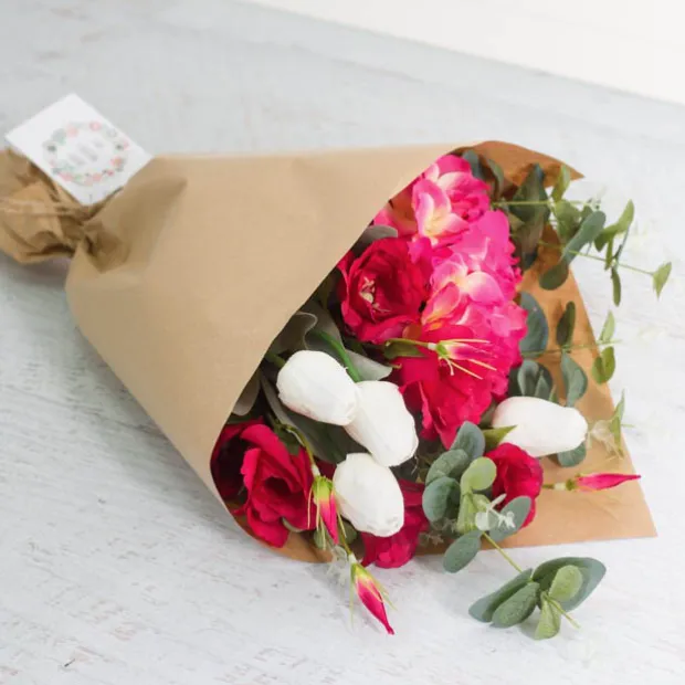 The rough and natural texture of kraft paper gives it a rustic, earthy appearance that is perfect for creating a unique flower arrangment or gift.