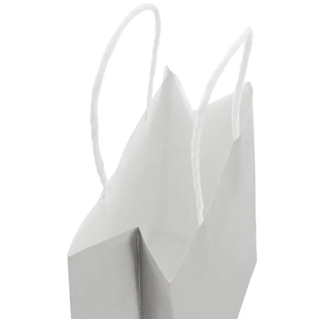 The colour is printed onto a white kraft bag and comes complete with a white twisted paper handle. Crafted with superior strength and construction, these bags are made of 120 GSM kraft paper. Each bag can bear up to 14kg.