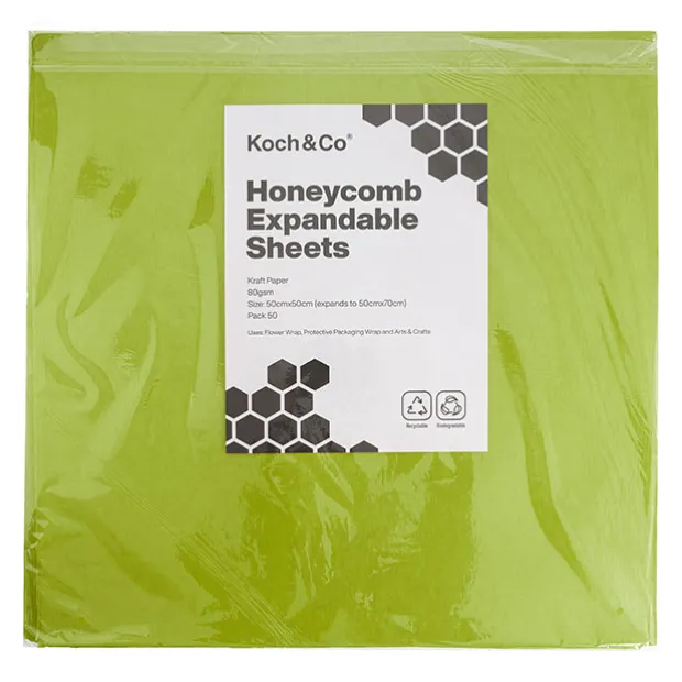Each sheet measures 50cm x 50cm and expands to 50cm x 60-70cm at maximum extension. Once expanded, this honeycomb wrap measures approximately 4mm thick. Available in a pack of 50 sheets, honeycomb or honey comb wrap is also known as Hex wrap.