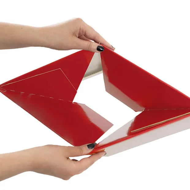 Simply take your flat pack posy box and open. The base will lock into position with a light pull or (or push from the inside). Then fold down the top flaps.