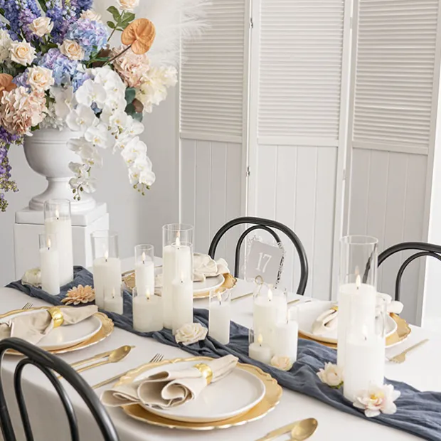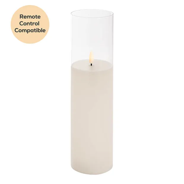 Be mesmerised by the magic of LED candles. This Glass Trueflame™ Flickering Led White pillar candle gives a cosy ambiance like a real candle. It is a safe alternative to decorate your home, weddings and any special events. Featuring a glass holder filled with real wax, long battery lighting life and a realistic flameless glow.